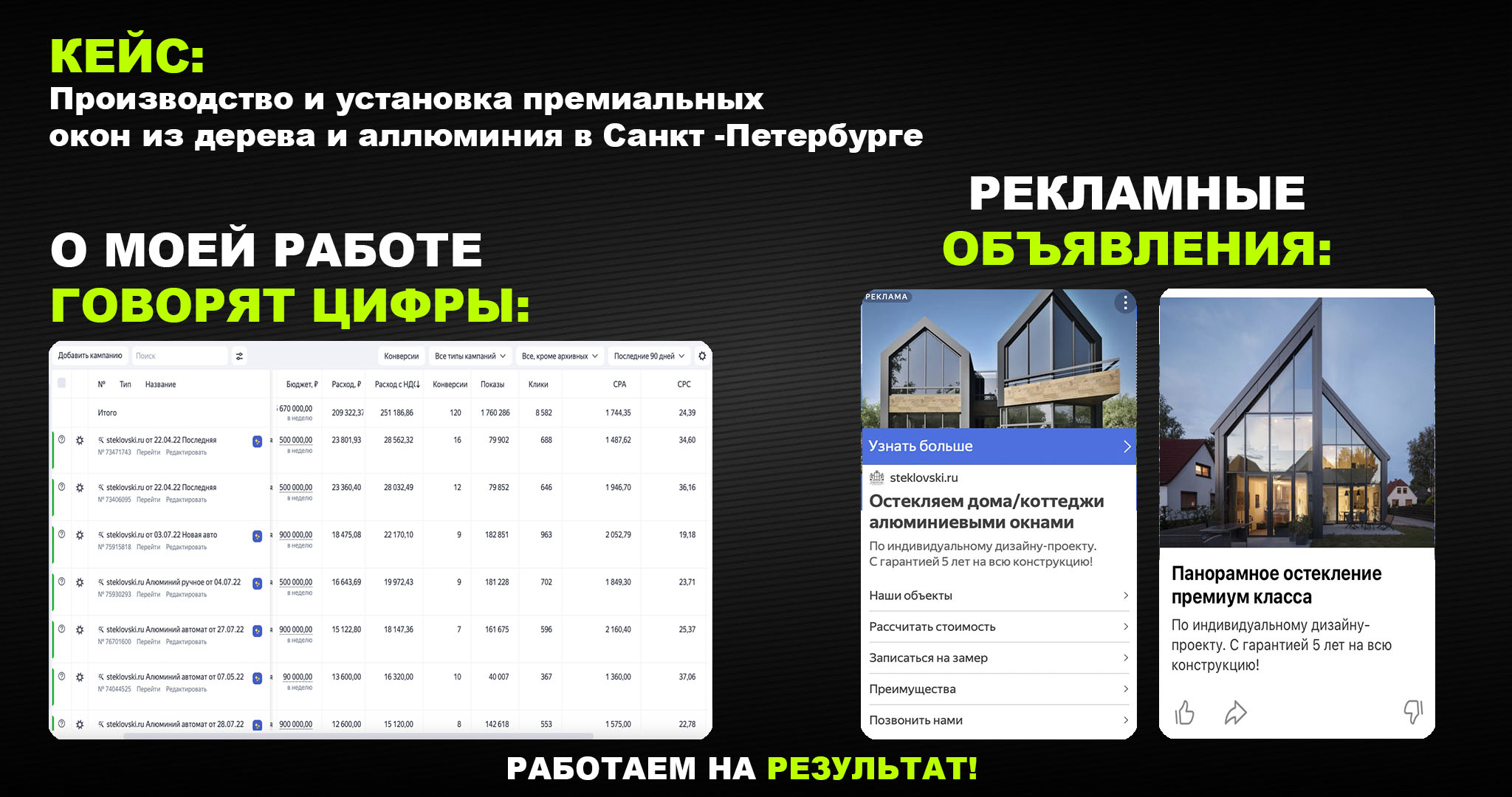 Итоги: получено 120 заявок за 3 месяца. Закрыто сделок на 9 000 000р. Клиент остался доволен проделанным результатом.